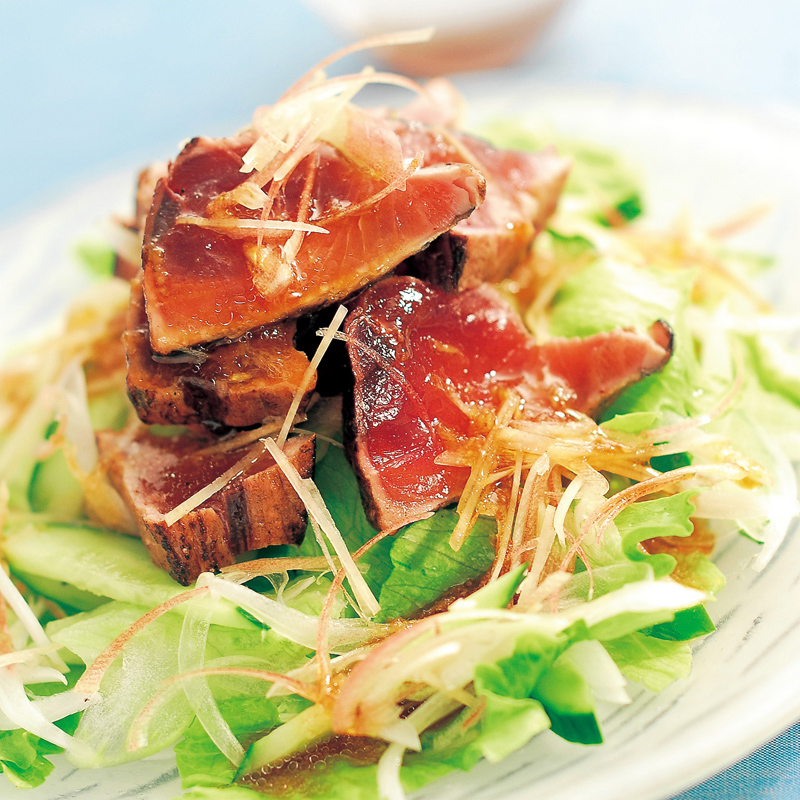 かつおのたたきと香味野菜のサラダOlive Oil Life オリーブオイルライフ。