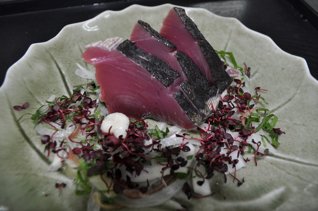 カツオのたたきのクレイジーカルパッチョレシピ日本緑茶センタ。