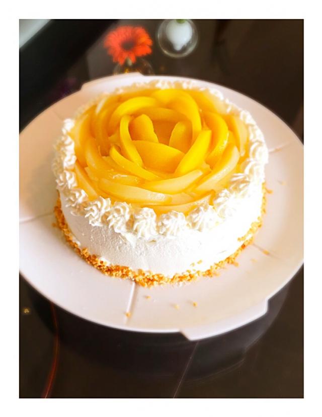 8月の桃のデコレーションケーキHappy Delicious Bakery。
