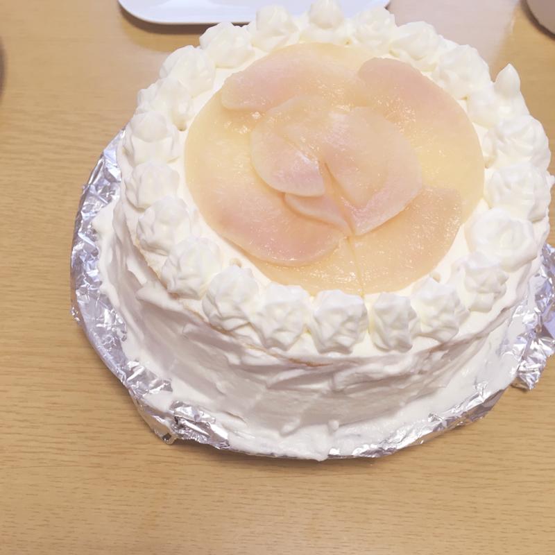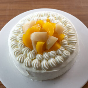 桃のデコレーションケーキ。