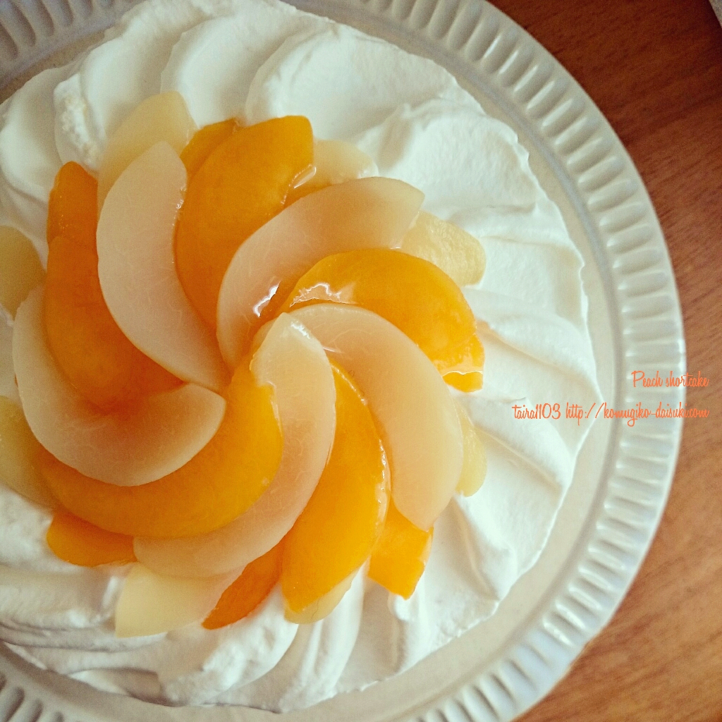 缶詰で作る 桃のショートケーキ。