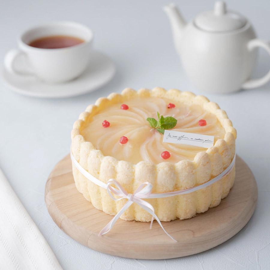 桃のシャルロットケーキ。
