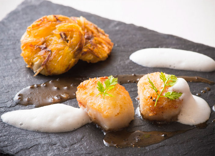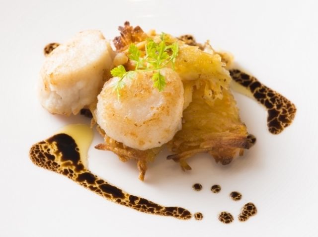 ホタテ貝柱のソテージャガイモのガレットバルサミコソース。
