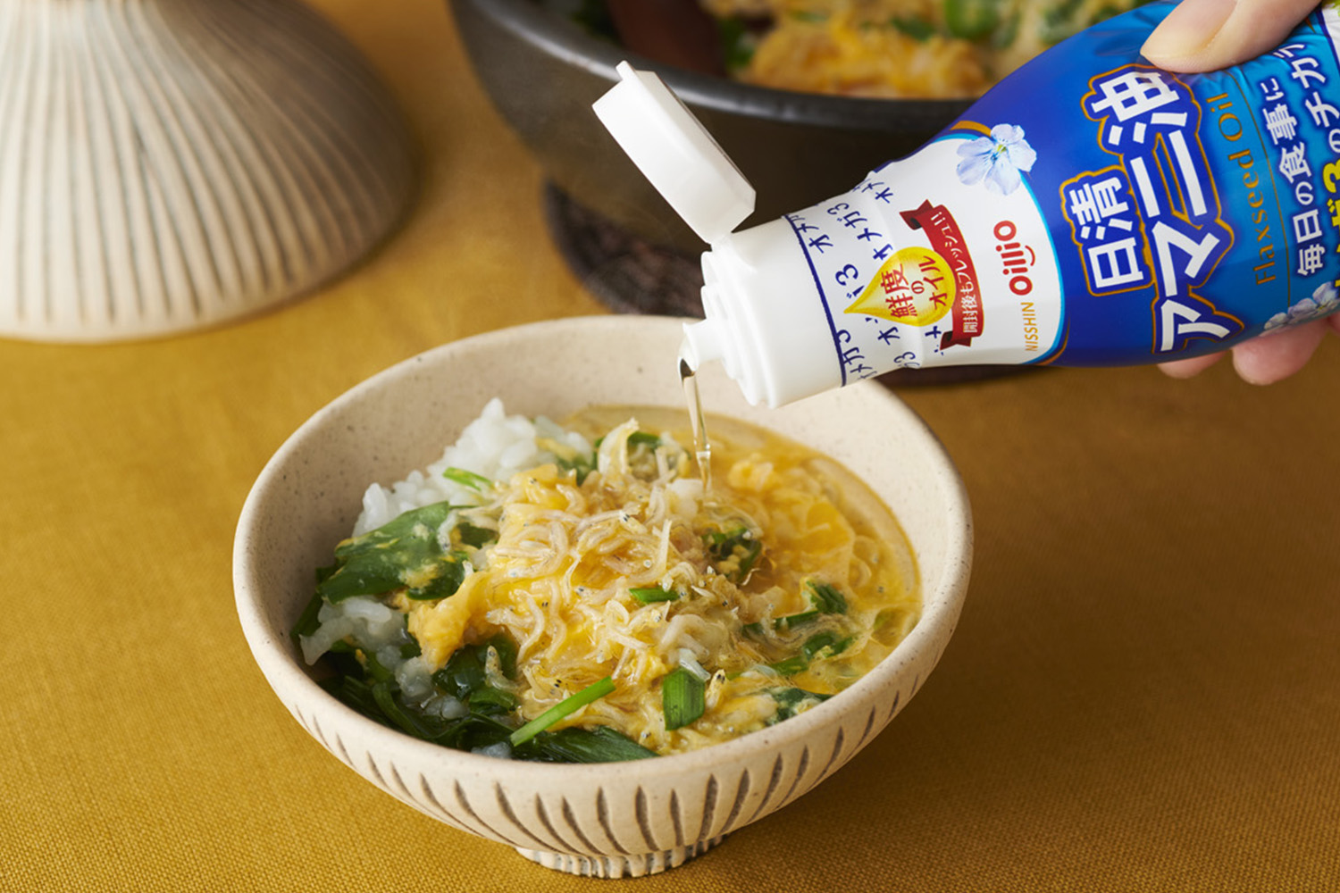 にら玉雑炊わくわくレシピ植物のチカラ 日清オイリオ。
