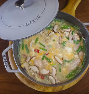 お米から☆簡単で美味しいニラ玉のお粥♪。