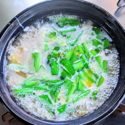 半端野菜で!!ふわふわ卵のニラ玉雑炊。