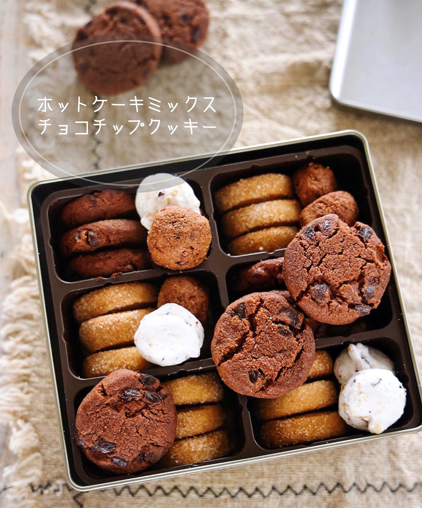 Mizuki ミズキ@料理研究家 on X: "材料4つ! ホットケーキミックスでチョコチップクッキー1.ボウルに常温のバター50g、ホケミ100g、ココア小2を入れて混ぜる。しっとりしたらチョコチップ30gも加えて混ぜ、手でまとめる。2.15cm長さの棒状に伸ばして1cm厚さに切る。