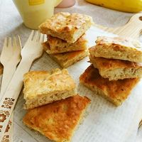 天板バナナケーキの作り方♪型不要!混ぜて天板に流して焼くだけで簡単なのにふっくら美味しいです。