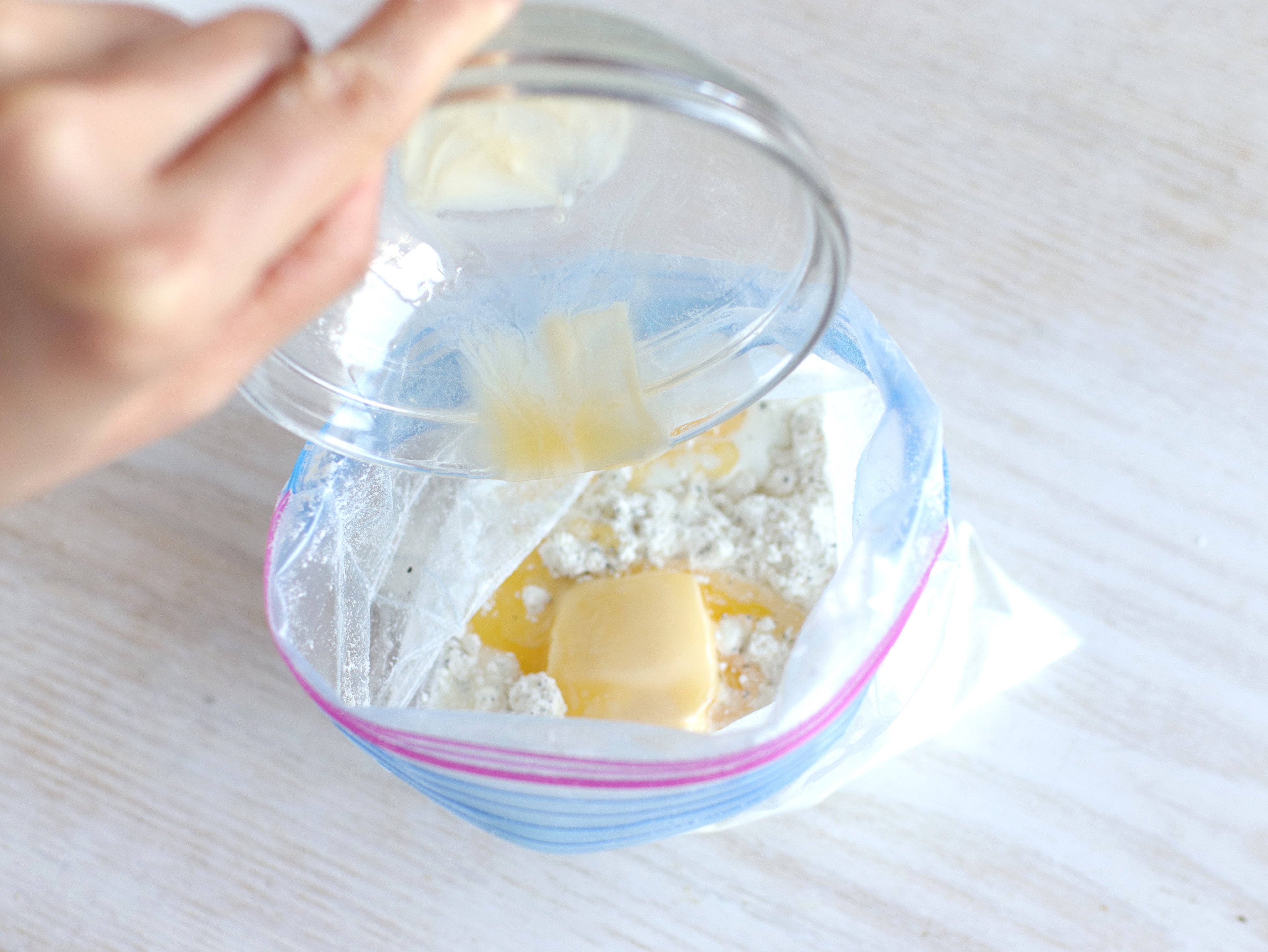 ぐっち夫婦@料理家 على X: "ホットケーキミックス使えばスコーンも超簡単♪ 袋で混ぜるから手も汚れないよ!紅茶とホワイトチョコスコーンバターをレンチン。袋にホットケーキミックス、茶葉入れ牛乳、バターも。袋を切り天板にドーナツ状に絞り、ホワイトチョコを。