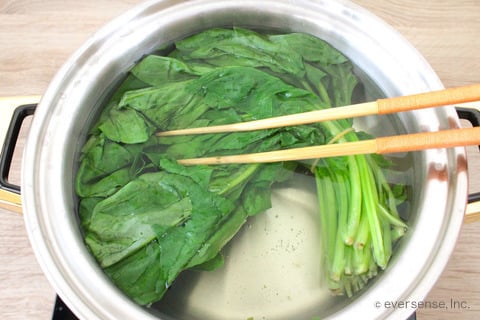 茹で時間がポイント!簡単おいしいほうれん草の茹で方。
