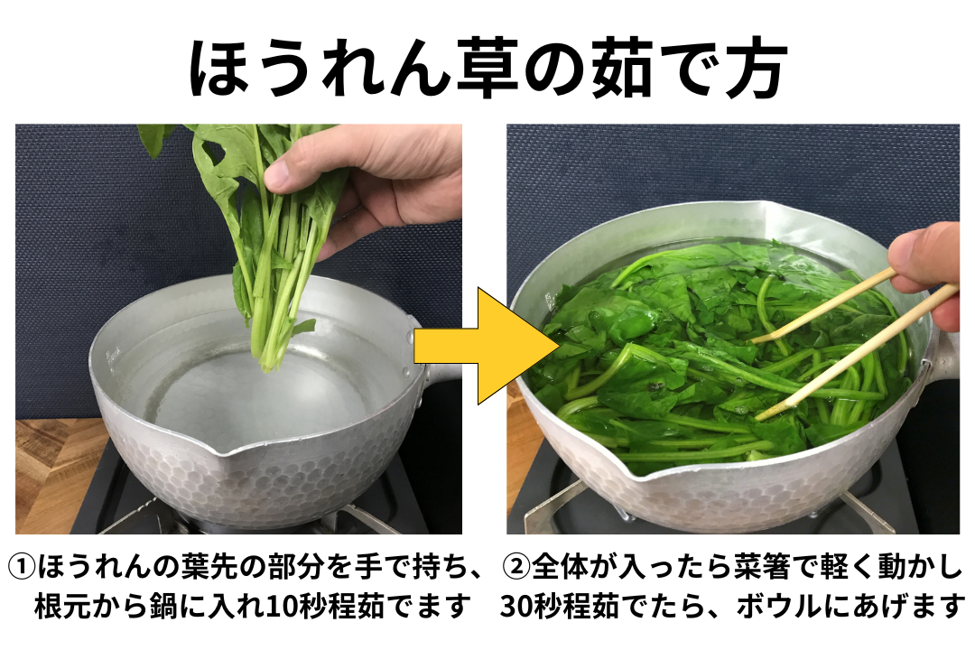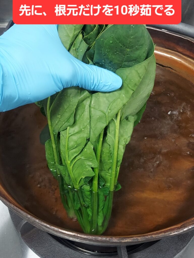 超重要 ほうれん草の茹で方ポイントは湯量・塩・氷水板前.fun。