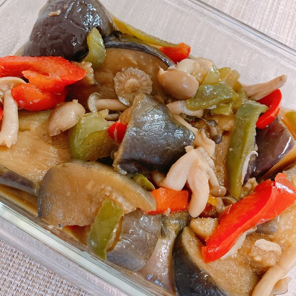 冷凍揚げナスで時短♫夏野菜の煮浸し。