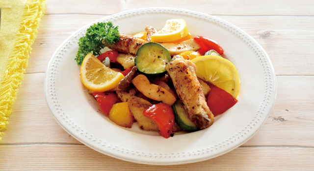 冷凍作り置き夏野菜とチキンのハーブソテー 2023年 365日レシピカレンダ。