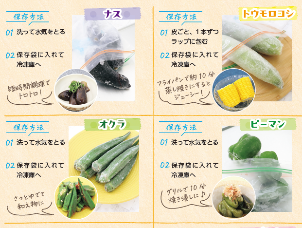 傷まず長持ち時短 冷凍野菜 夏野菜の冷凍保存方法レシピ。