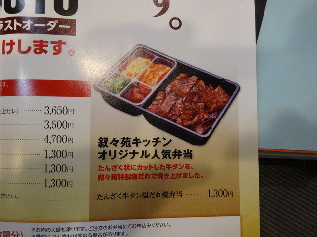 焼肉 叙々苑 関西 の上タン塩弁当 ニンニク不使用3,800円 お弁当デリ お弁当の配達デリバリ。