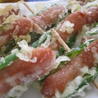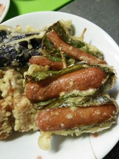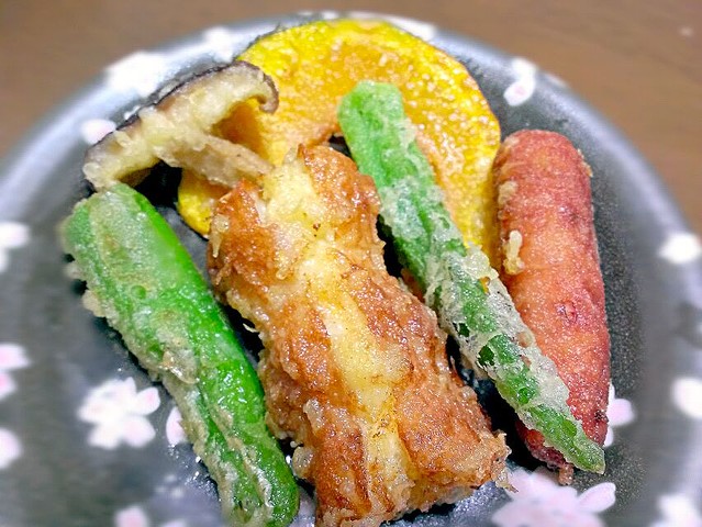 天ぷら, ごぼうとししとう, ししとういっぱい入ってんのに100円だった, ししとうの辛い個体は当たりって呼んでる,天ぷらごぼうししとうごぼう天ごぼ天おつまみ。