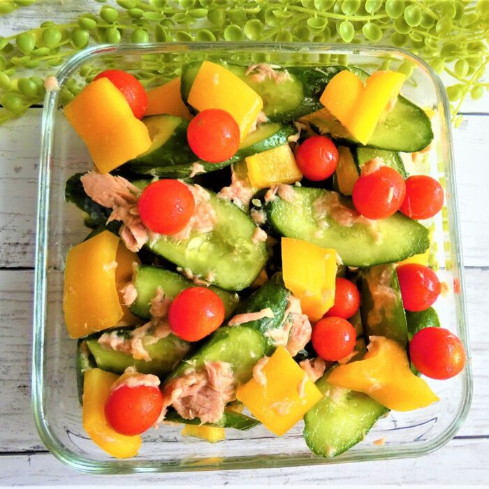 冷やして美味しい!ツナと彩り野菜の白だしサラダ。