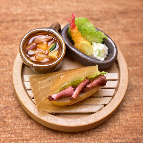 展示のみ ミニチュアフード 「ランチセットA ローストビーフサンド 」 作家:京都まめひろさん1 12スケール品番:35712m-sネコポス不可Cミニチュア作家作品,作家:京都まめひろさんの作品MINIATURE MARKETミニチュアマーケット。