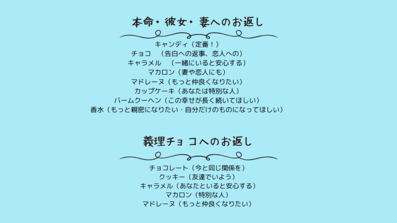 ホワイトデーのお返し意味一覧。飴は本命or義理?おすすめお返しギフトもチェックMOOD MARK IDEA ムードマークアイデア。
