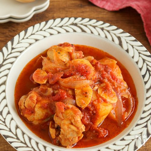 炊飯器でできちゃう♡手羽元とじゃがいものトマト煮込み。