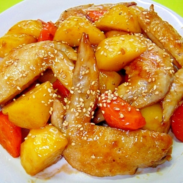 手羽元・じゃがいも・にんじん・玉ねぎの煮物。