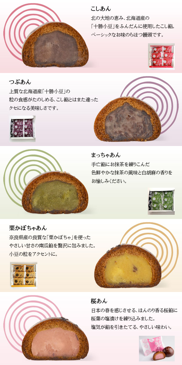 らほつ饅頭 アソート10個入 こしあん・栗かぼちゃあん・つぶあん・大和抹茶あん・さくらあん奈良祥樂WESTERモール。