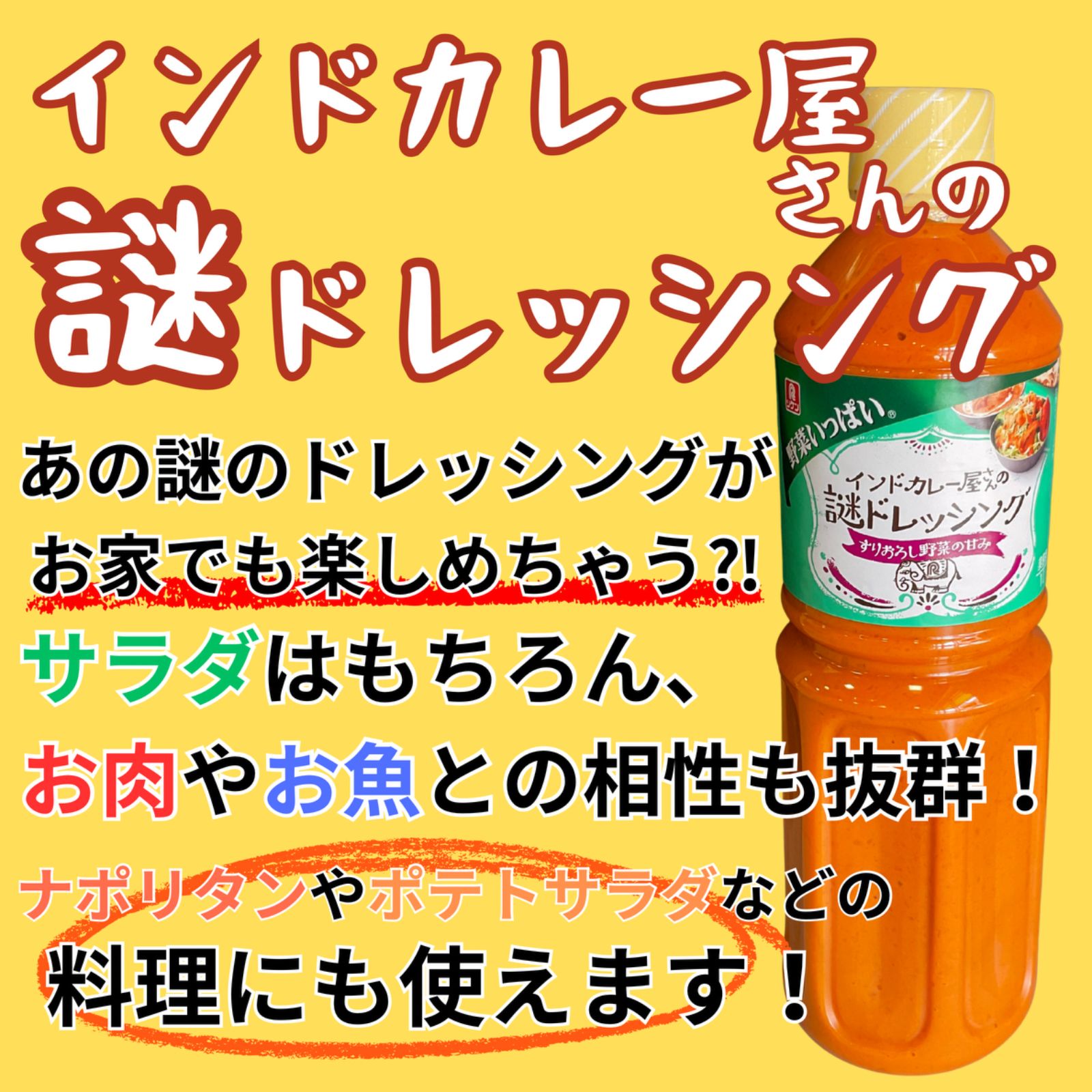 成田萬味公津の杜市場店☆official☆🥳新商品のお知らせ🥳 理研ビタミンさんから 『インドカレー屋さんの謎ドレッシング』🥗 インド カレー屋さんで出てくるサラダのドレッシングを 再現した、謎に美味しいですドレッシングです🤔Instagram。