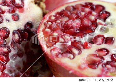 ザクロの果実 断面のクローズアップの写真素材100971472- PIXTA。