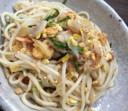 タイ料理にハマりたい! その6:4品目 パッタイクンソット タイのエビ入り焼きそば 。モチモチ食感の安心できる味♪ベランダ果樹園。