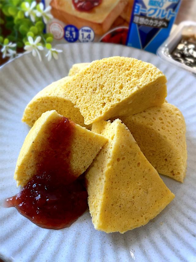 糖質オフ!混ぜてチンするだけ!簡単ふわふわおから蒸しパン♪。
