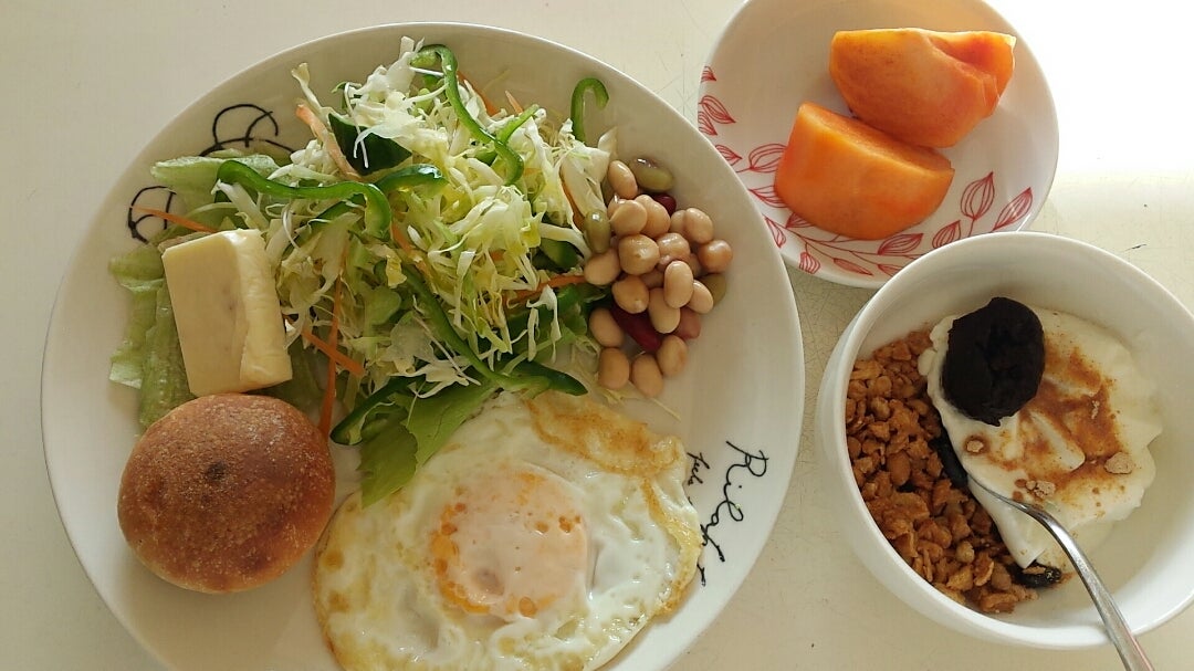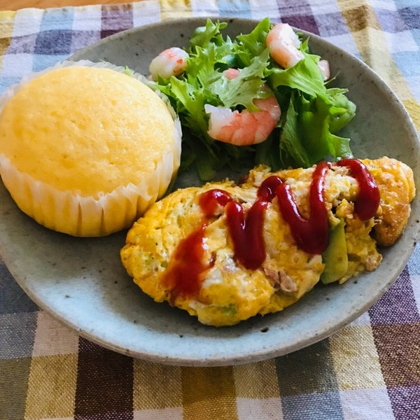 朝ごはん*おから蒸しパン熱再び明日から本気だす ; ・`ω・´食を見直して46㎏キープ目指す❢。