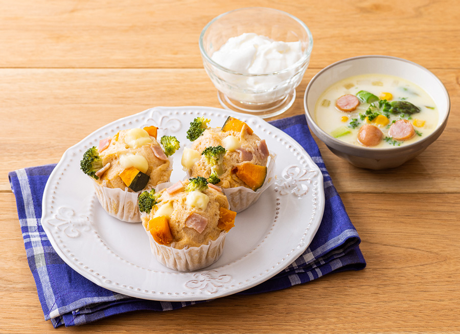 おから蒸しパンに飽きたら朝これ食べて レンジで簡単!バターなしでキッシュ風おから蒸しパン。