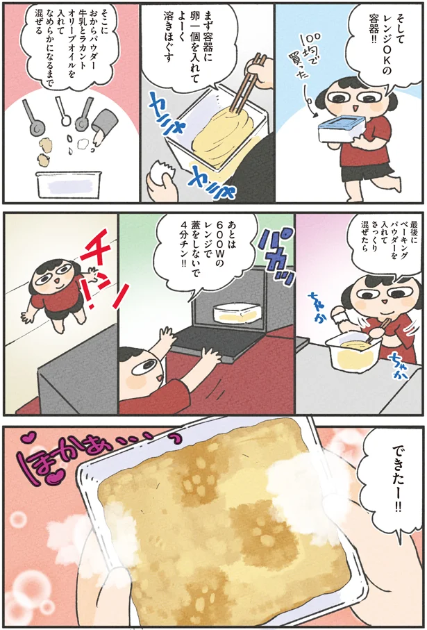 1で覚える おからと米粉のノンオイルレンジ蒸しパン。