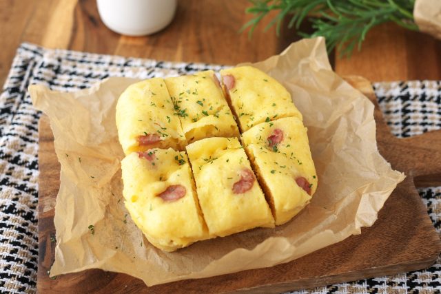 朝ごはんにぴったり マグカップでベーコンチーズ蒸しパン。