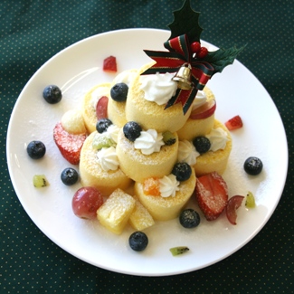 ロールケーキの盛り付け。