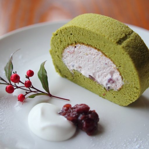 ふわふわとろ~り♪あずきと抹茶のロールケーキ☆ - エビデリ!和スイーツ - a Silk Tree Cafe - カフェ・喫茶店 棚倉町 -ふくラボ。