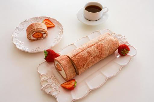 樹のさらに盛り付けたロールケーキ1本と珈琲 写真素材6684661- フォトライブラリ。