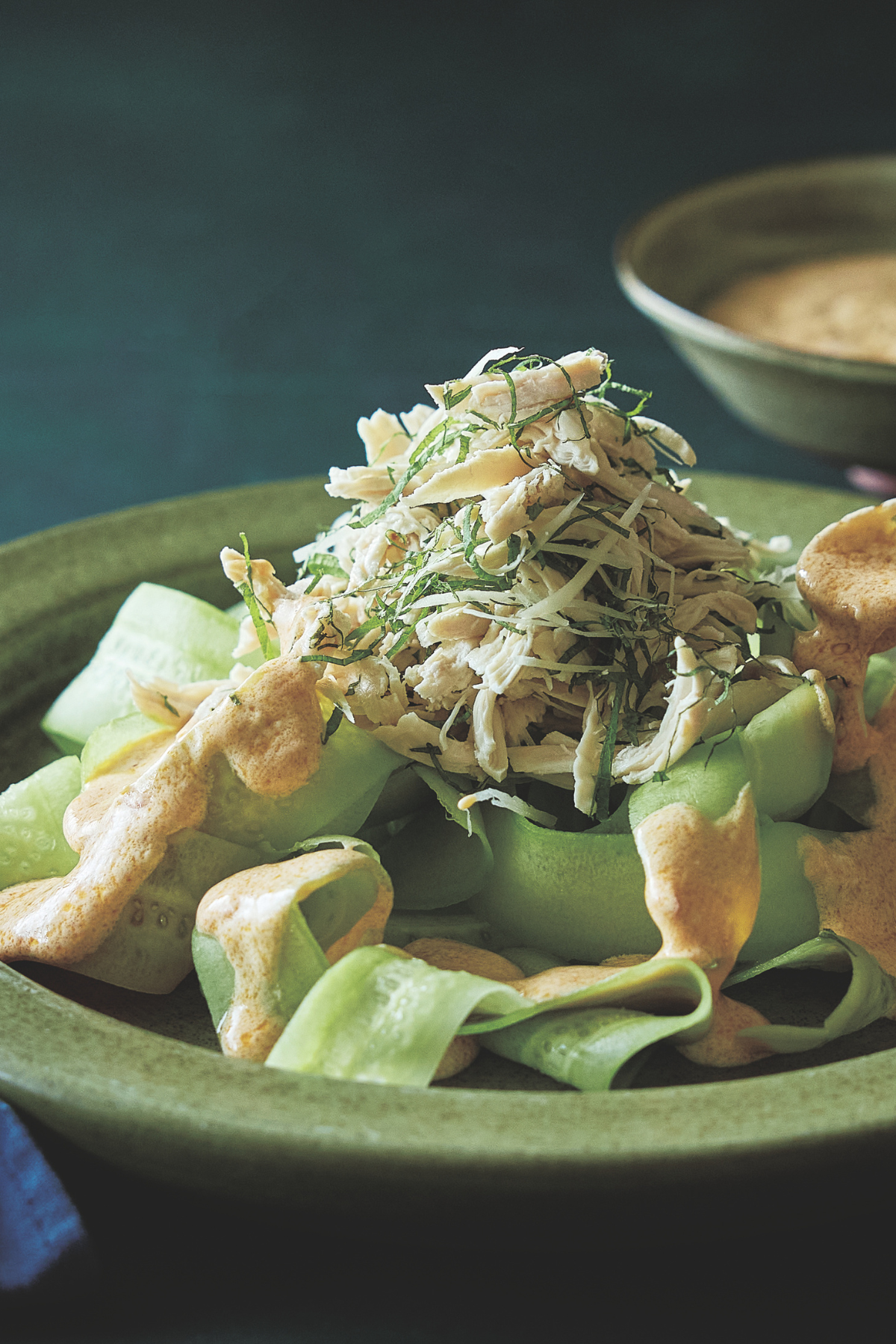 手羽中と万願寺唐辛子の海水焼き、塩トマト のレシピ・作り方ELLE gourmet。