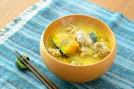 かぼちゃと鶏挽き肉の山椒みそ汁レシピマルコメ。