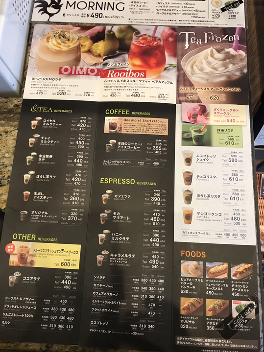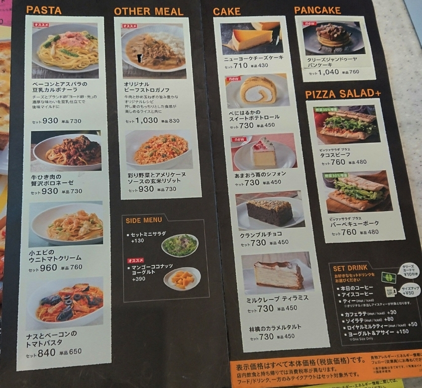 タリーズ メニュー表 モーニング・食事・スイーツ・ドリンクカフェレポ。
