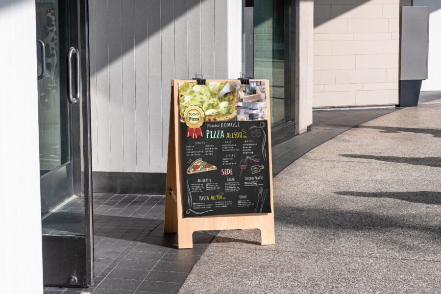 ポスター制作事例 – PIZZA BARのメニューポスターデザインASOBOAD。