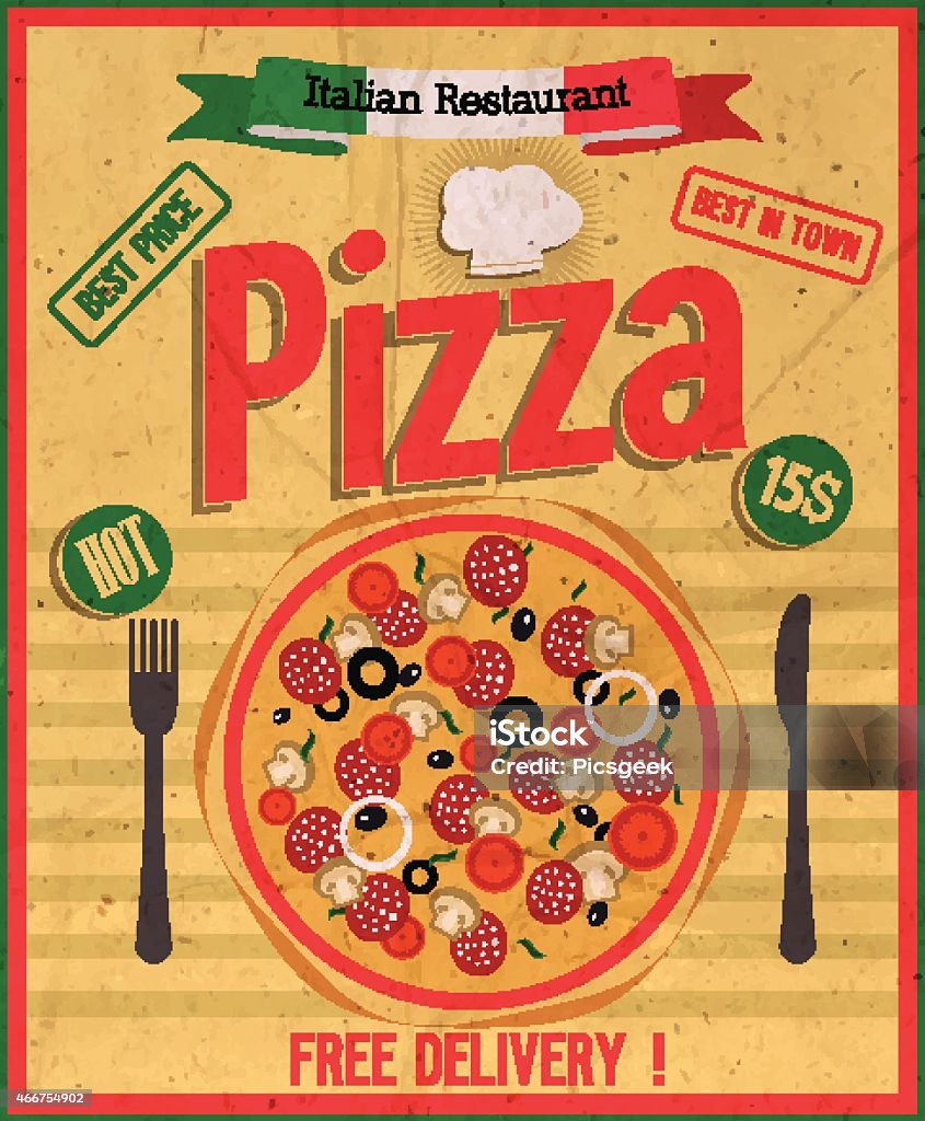 レトロなピザのサインポスターに古い紙の質感を与えます - ピザのベクターアート素材や画像を多数ご用意 - ピザ, レトロ調, 古風 - iStock。
