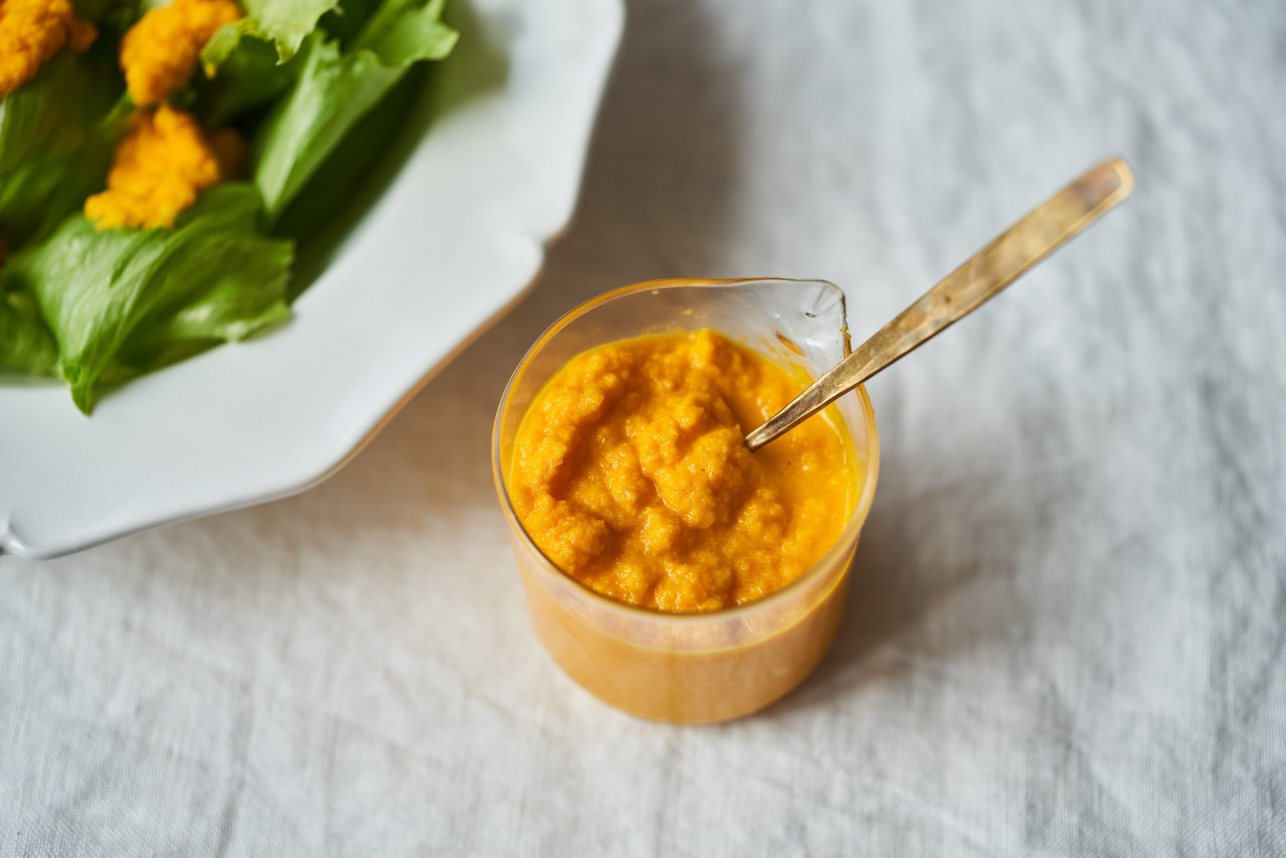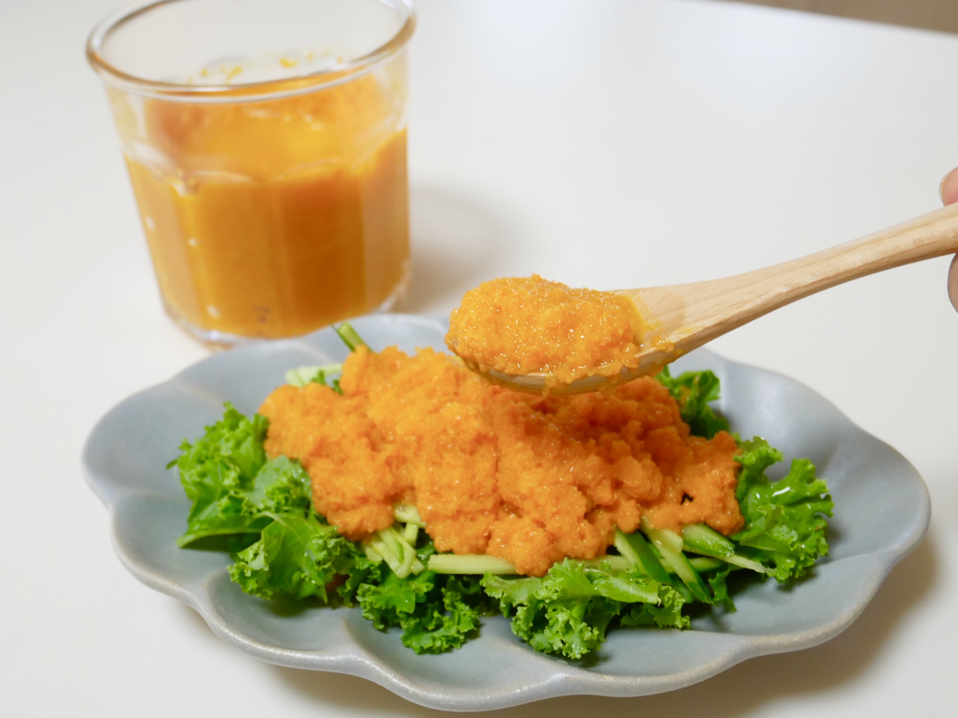 ミキサーで簡単!「にんじん甘酒ドレッシング」レシピ 榎本美沙さんの「旬を食べつくす日々の食卓」。