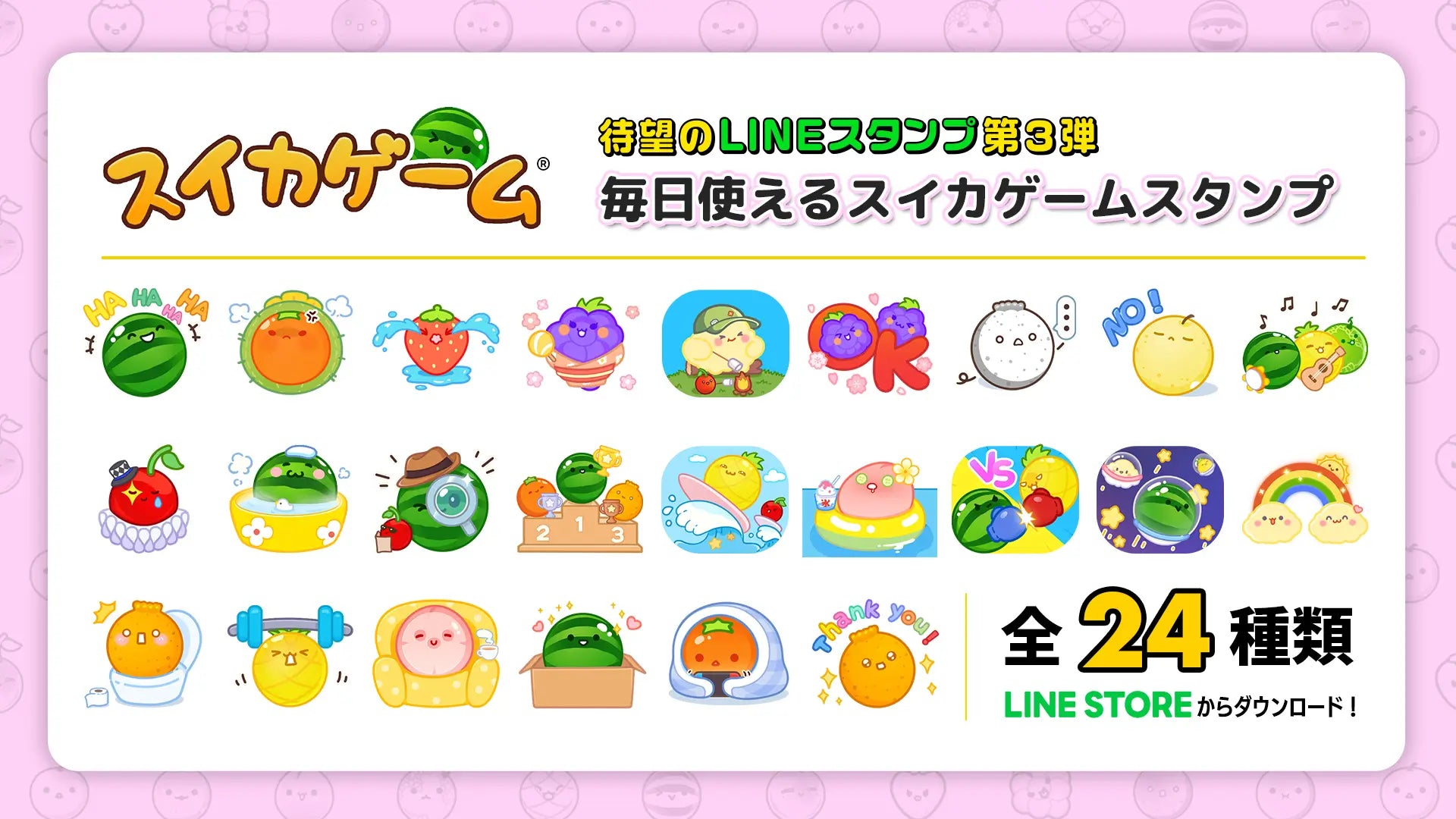 動く×可愛いが大集合!40種類のスイカゲーム®LINEアニメーション絵文字が新登場!最新情報スイカゲーム公式サイトAladdin X Inc。