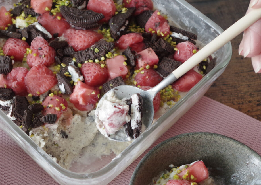 いちごのコンポート のクッキー&クリームアイスいずみピクルス。