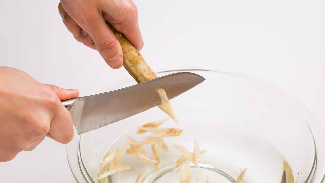 ごぼうの下処理のやり方!洗い方・皮むきの方法・アク抜きの時間を解説。やまでら くみこ のレシピ。