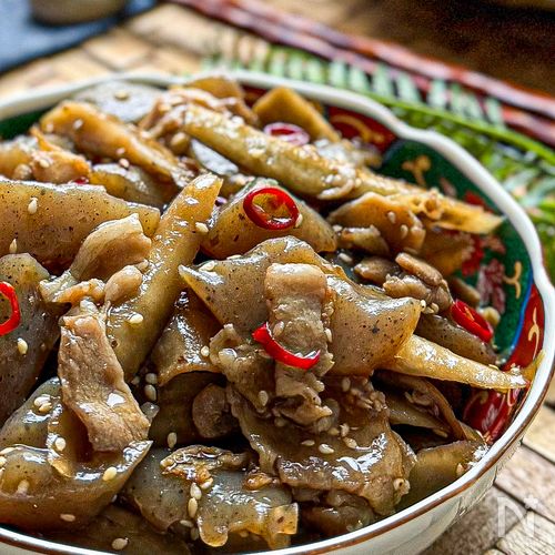 こんにゃくとごぼうの こってり♡腸活きんぴら。