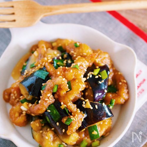 冷めても美味しい♡『カリカリ豚コマとなすのスタミナ甘酢だれ』。