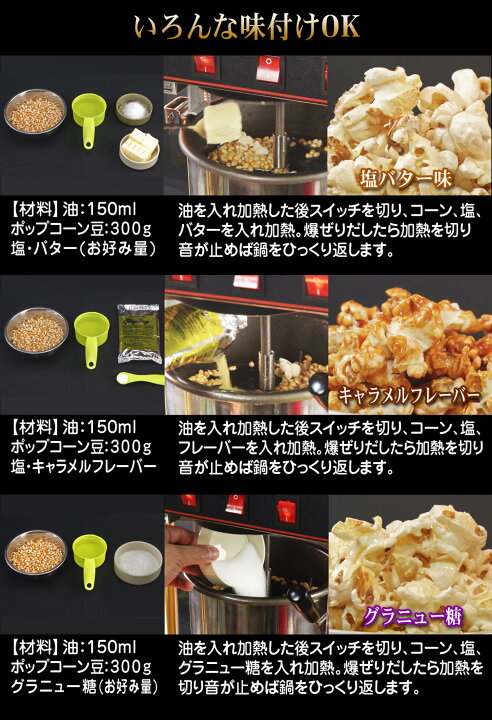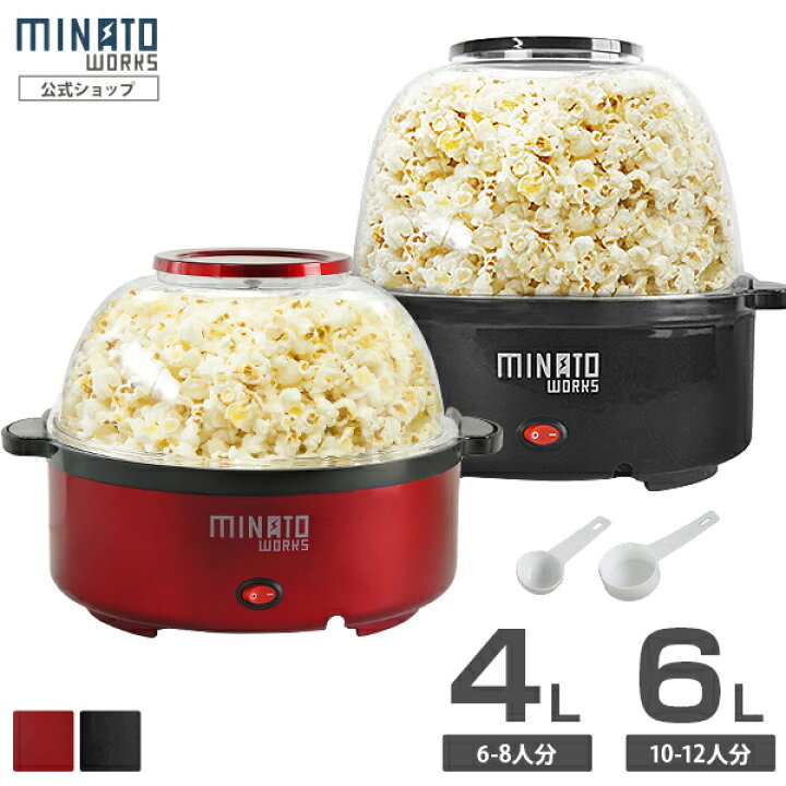 楽天市場 ミナト ポップコーンメーカー 容量 4L 6Lレッド・ブラック 家庭用100VPOP-401 POP-601ポップコーンマシーン: ミナトワークス。