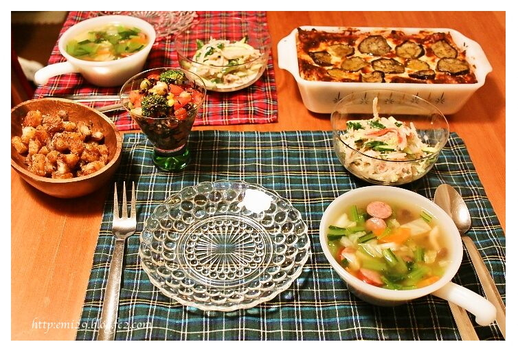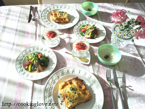 ラザニア』を主食に”本日の献立”ふくろうママのお料理ノート。